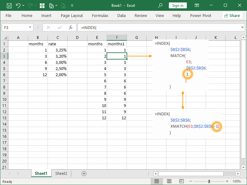 Note how match types here are the same as in the XLOOKUP function, exactly opposite of the MATCH function.